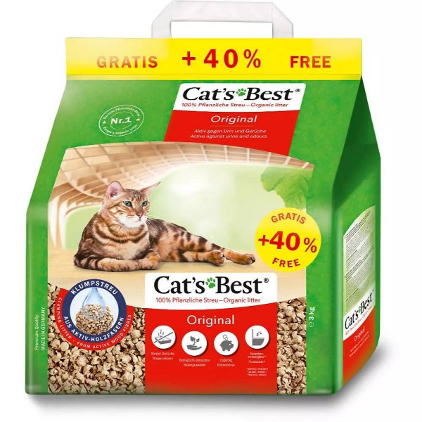Cat's Best Original je ekološki mačji posip, ki se grudi v kepe, katere lahko zavržemo kar v domači WC. Narejen je iz 100% naravnih sestavin in brez kemičnih dodatkov. Posip najlažje opišemo z naslednjimi besedami: lahek, močno vpojen, brezprašen, se grudi. Cat's Best Original vpija vonjave kot noben drugi higijenski posip. Neprijetne vonjave se zelo učinkovito vežejo v kapilare organskih vlaken. Je popolnoma BREZ kemičnih dodakov in umetnih arom. Muce imajo najraje čist in naraven vonj mačjega posipa Cat's Best Original. Naredite sebi in vaši muci uslugo!