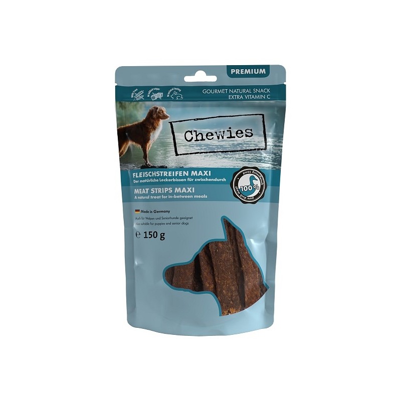 Chewies mesni trakci Maxi Raca so sestavljeni iz mletega in nežno sušenega mesa z dodatnim vitaminom C. Zaradi posebne proizvodnje so visokokakovostna hranila skoraj v celoti ohranjena. Chewies mesni trakci so okusna in zdrava poslastica med obroki. Izdelani so v Nemčiji. Surovine so, kolikor je to mogoče, iz Nemčije. Chewies - 100% pes!