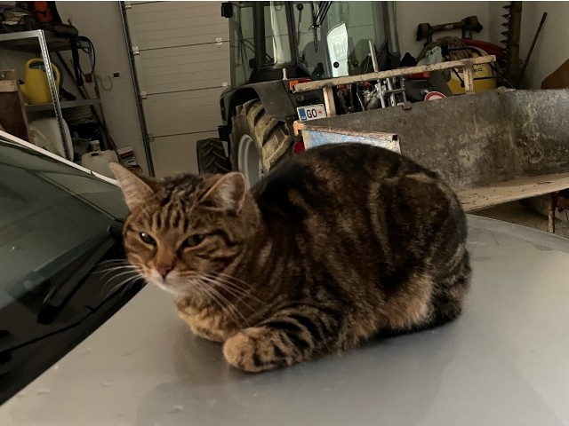 Mau je prostoživeča muca, ki se je ne vemo kako znašla sama in se zatekla k nam. Hitro nam je dala vedeti, da smo sedaj mi njena družina. Je razigrana in prisrčna muca, ki zelo dobro lovi miši. Občasno si za posladek privošči tudi kakšno kobilico.