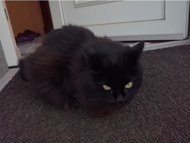 Črna dolgodlaka nagajivka,ki obožuje dnevno poležavanje in tekanje za igračkami.