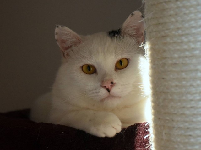 Opomba: Feo je varovanec zavetišča Mačja hiša in ne sodeluje v žrebanju za nagrado. Tu je le zato, da vas opogumi k sodelovanju.