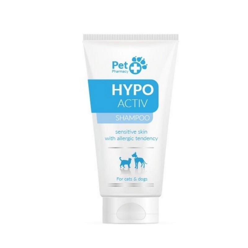 HypoActiv je nežna veterinarska dermokozmetika za pse in mačke z občutljivo kožo, nagnjeno k alergijam. Sestavine, vsebovane v šamponu, odlično očistijo kožo in dlako, vzdržujejo ustrezen pH, nežno odstranijo odmrlo kožo, zagotavljajo ustrezno vlaženje, pomagajo pri obnovi poškodovane kože in ne dražijo občutljive kože. Šampon je primeren za tudi mladiče.