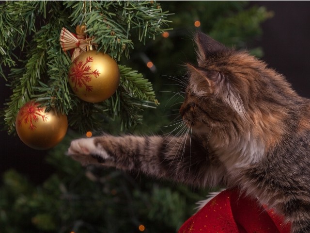 Božično in novoletno okrasje naj bo varno. Če ste lastnik muce, novoletne smrečice ne krasite z dragocenimi okraski in bodite pripravljeni na vsaj nekaj škode. Poskrbite, da vaša žival ne bo pojedla katerega od okraskov in vas prisilila k obisku dežurnega veterinarja. Primerno zaščitite tudi kable svetlobnih teles.